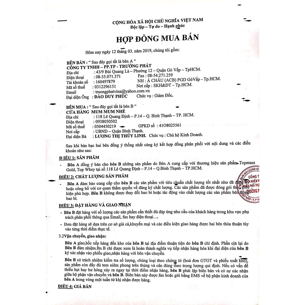 Sữa bột Top Mass Gold vị vani 800g tăng cân free ship
